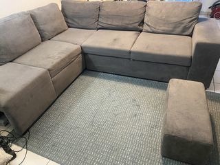 Canape convertible 3 places, en bon état, TEIJO en tissus noir avec coffre de rangement L 187 cm P 91 cm H 82 cm - couchage 140 x 190 cm Acheté en mai 2024 je le vends au prix 22