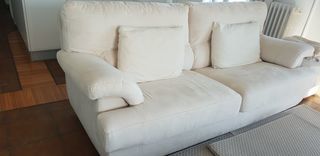 canapé 3 places en microfibre beige très bon état