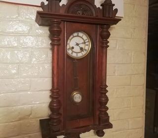 Horloge carillon mural à balancier. Remontage manuel à clé. Haut 100. Prof 17 larg 37. En état de fonctionnement.