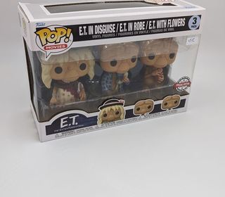 Bonjour, Nous mettons en vente ces figurines Pop Movies E.T. in Disguise / E.T. in Robe / E.T. With Flowers 3 Pack E.T. The Extra-Terrestrial Special Edition vendu neuve en boit