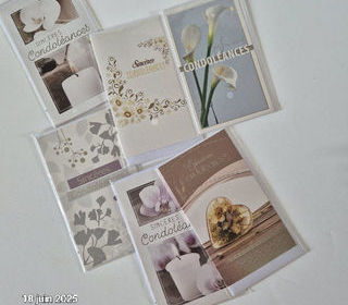 Lot de 6 cartes postales de condoléances neuves bien sûr ! Au dos se trouve des idées de messages que vous pouvez personnaliser prix magasin 15.60