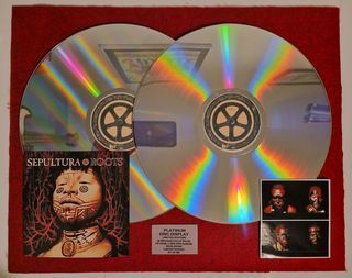 Tres beau cadre deco SEPULTURA roots Cadre neuf,fabrication artisanale,cadre 50x40cm,contour bois couleur blanc éternel,feutrine de fond rouge,vitre en macrolon,(évite le poids e