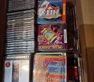 À vendre, lot de CD audio variés, divers artistes et genres musicaux. Chaque CD est contenu dans sa boîte d'origine, les titres visibles comprennent des musiques de compilations et