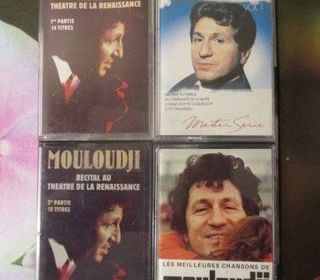 Cassettes audio Mouloudji 1. "Récital au théâtre de la renaissance" 1992 partie 1 et 2 : 5€ les 2 2. Master Serie Vol .1 : 1994 Podis 2€ 3. Les meilleures chansons : Sony Mus