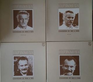 12 vinyles répartis en 4 coffrets de 3 disques. Georges Brassens de 1956 à 1976, avec fascicules et textes des chansons. Vinyles en parfait état.