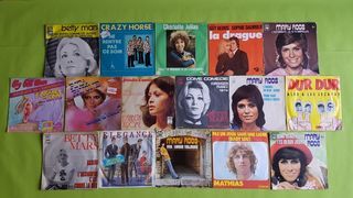 LES 45T PHOTO 24 BETTY MARS CRAZY HORSE CHARLOTTE JULIAN GUY BEDOS SOPHIE DAUMIER MARY ROOS BIG FAT MAN RITA PAVONE ELISABETH JEROME ALEX ET LES LÉZARDS ÉLÉGANCE MATHIAS