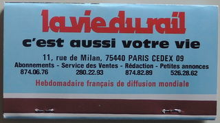 Lot de 20 boîtes d'allumettes publicitaires "la vie du rail". Chaque boîte contient 48 allumettes (neuves)