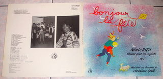 Rare vinyle 33t de Nicole RIEU Album NICOLE RIEU CHANTE POUR LES ENFANTS N° 1 - BONJOUR LA FÊTE Histoires en chansons de Christiane GAUD Pochette ouvrante Dédicacé dan