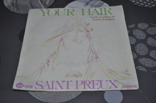 45 tour vinyle de Saint Preux "Your Hair", d'après un poème de Charles Baudelaire. Quelques traces d'usures peuvent apparaître, étant des versions originales. Prix: 5 euros