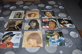 Lot de 45 tours vinyles avec entre autre "Mireille Mathieu", "Serge Lama", "Alice Dona" etc... Quelques traces d'usures peuvent apparaître, étant des versions originales. Prix: