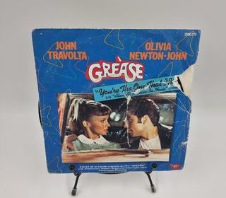 Bonjour, nous mettons en vente ce vinyle 45 tours Grease : John Travolta & Olivia Newton-John vendu dans son fourreau d'origine (Foureau+Disque). État : Bon, testé et fonctionnel