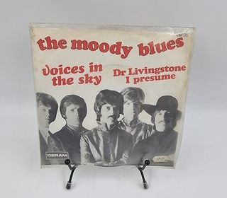 Bonjour, nous mettons en vente ce vinyle 45 tours The Moody Blues : Voices in the Sky / Dr Livingstone, I Presume vendu dans son fourreau d'origine (Foureau+Disque). État : Bon, t