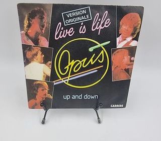 Bonjour, nous mettons en vente ce vinyle 45 tours Live is Life : Opus (Up and Down) Version Originale vendu dans son fourreau d'origine (Foureau+Disque). État : Bon, testé et fonc