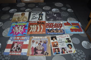 Lot de 45 tours vinyles avec entre autre "Martin Circus", "Rubettes", "Les Forbans" etc... Quelques traces d'usures peuvent apparaître, étant des versions originales. Prix: 10
