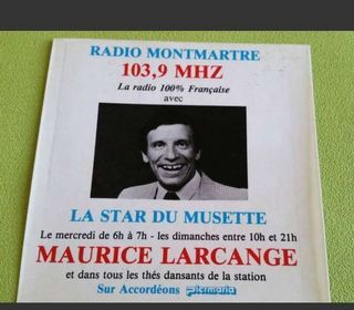 AUTOCOLLANTS RADIO MONTMARTRE 103,9 MHZ LA RADIO 100°/? FRANÇAISE AVEC LA STAR DU MUSETTE MAURICE LARCANGE