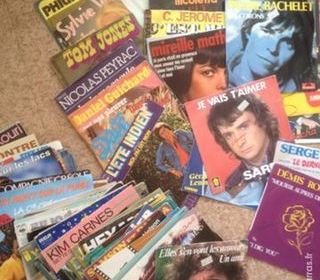 256 vinyls 45t divers artistes exemple ; M SARDOU, ADAMO, CLAUDE FRANCOIS, SACHA DISTEL, JOE DASSIN, SYLVIE VARTAN, SHEILA, MIREILLE MATHIEU, C AZNAVOUR, NANA MOUSKOURI, C JEROME,