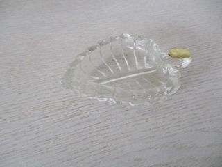 Cendrier individuel en forme de feuille, en verre transparent, longueur 11cm largeur 7cm