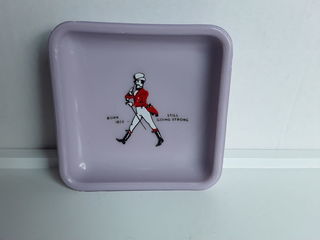 CENDRIER carré violet en céramique (décor : personnage anglais) Vintage 10 cm x 10 cm x 2cm