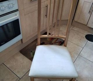 Lot de chaises en bois clair et dessus de chaise en tissu blanc/ beige, en très bon état