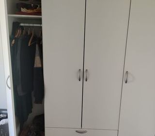 Une table blanc ronde, chaise scandinave, bureau, chaise de bureau, armoire blanc, 2 meubles de cuisine