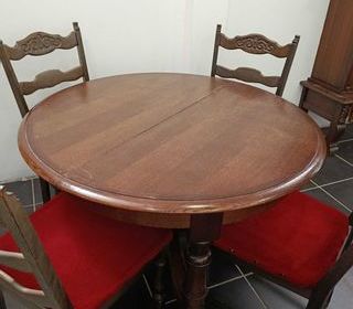 Ensemble table ronde en bois avec 4 chaises €" style classique Vends jolie table ronde en bois massif avec ses 4 chaises assorties. Design intemporel, idéal pour salle à manger o
