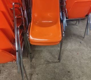 vds un lot de 12 chaises pliantes, armature laquée noire, assise plastifiée. État neuf. 5€ pièce ou 60 € le lot. A enlever banlieue de Vannes.