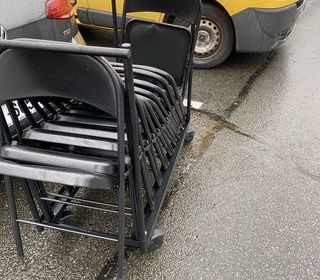 Chariot pour transport de chaise avec 12 chaises noir en métal et pliable