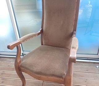 Entièrement clouté avec liserai En velours jaune or 2 Accoudoirs recouverts en velours Hauteur totale 120 cm Largeur du dossier :49 cm Largeur de l'assise : 62 cm Profondeur