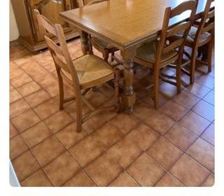 Buffet laqué vintage 5 portes : seul 100 e Table vintage laquée 150 X 85 cm, avec 2 rallonges escamotables de 45 cm (sous plateau). + 6 chaises avec assisses rembourrés. Table s