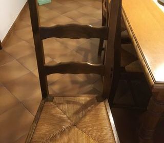 6 chaises en chène massif clair,assise paille,dessus amovible.hauteur du dossier:72cm,hauteur de la chaise:1,15m.fabrication artisanale. faire proposition ,elles sont dans un bon