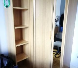 Chambre 1 personne GAUTIER Sagane decor aulne naturel : - d'une armoire d'angle 2 portes dont 1 glace 1/2 penderie, 1/2 lingère L95 cm, H196 cm, P95 cm - d'une colonne étagère d