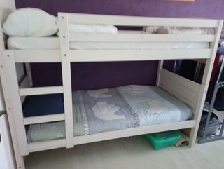 Lits superposés en bois massif blanc (AARON La Redoute) 90x190 parfait pour équiper une chambre d'enfants ou d'amis quant ils sont montés en lits séparés. Ils sont en très bon éta