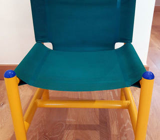 PETITE CHAISE ENFANT DESIGN ITALIEN 1980 Cette chaise d'enfant se compose : - Une ossature en métal époxy coloris jaune. - Une assise et un dosseret en toile Batyline lavable, i