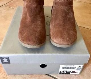 Boots en croûte de cuir et fermeture glissière de marque Mégis pointure 36 état neuf car portée sur 1 fois à 20 euros