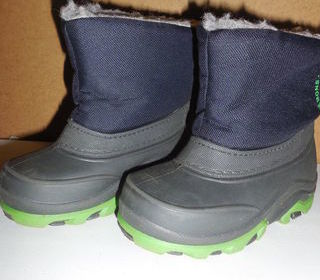 bottes pour enfant pointure 22 / 23 , marine avec un peu de vert à la semelle . doublure polaire en très bon état .