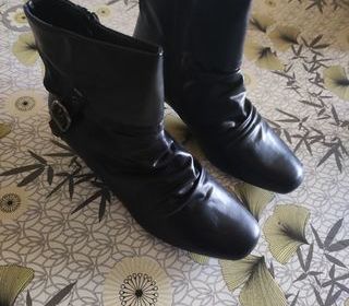 Bottes hautes en cuir noir, taille 37 marque française Bata ?? Doubles boucles Talon de 2.5 cm Ont été toujours soigneusement entretenues, elles sont en très bon état, portées