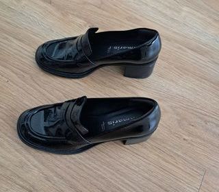 JE VENDS DES MOCASSINS NOIRS VERNIS POINTURE 39 HAUTEUR TALON 7cm