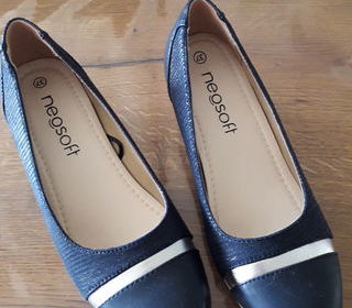 Chaussures de femme , portées qu'une seule fois , de couleur bleu marine , petits talons , pointure 37 .