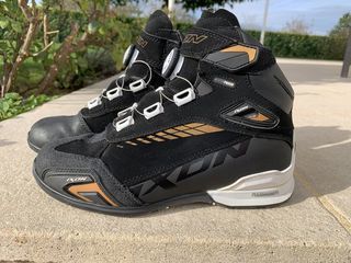 Basket moto femme taille 38 marque Ixon modèle BULL état neuf Noir/Blanc/Or Baskets état neuf Étanches et respirantes. Système de fermeture ATOP Pour votre sécurité Homologati