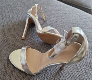 Chaussures talons argentés, taille 37, acheter mais jamais portées trop hautes