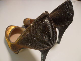 Magnifiques escarpins talons hauts, en strass argentés et dorés. utilisé deux fois Idéal pour les fêtes Taille 37
