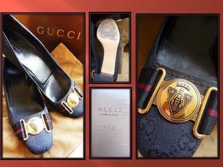 Mocassins femme "Gucci" Taille 36. Couleur; Noir Parfait état, utilisé deux fois pour occasion!! Chacun des mocassins a son pochon et sa boite d'origine. 220.00 euros.. SVP pas