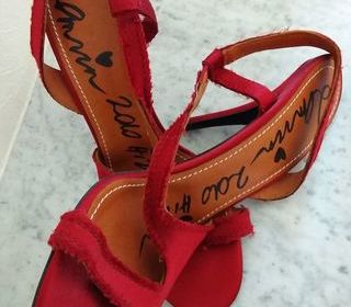 LANVIN SANDALES CUIR / SATIN ROUGE - POINTURE 40 - TALONS 8- 9 CM NEUVES 150 EUROS JAMAIS PORTEES SANS BOITE NI POCHETTE EN L AUTHENTIFICATION PAR VENDEUSE D UN VIDE DRESSING