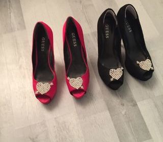 Je vends mes 2 paires d' escarpins noirs et rouges marque GUESS pointure 37 hauteur 10 cm à saisir 200e les deux, portés une seule fois état neuf!!