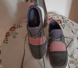 basket pratiquement neuves en parfait état de coloris gris bordure de la basket en suédine taille 38 très lègéres