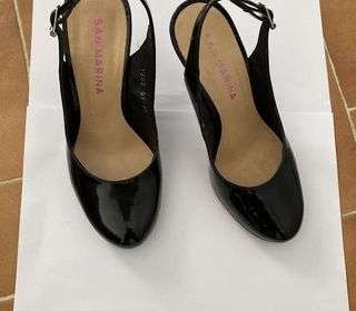vends Chaussures femme escarpins vernis noir Ouvert derrière pointure 36 Vernis noir Talons 7 cms Très bon état