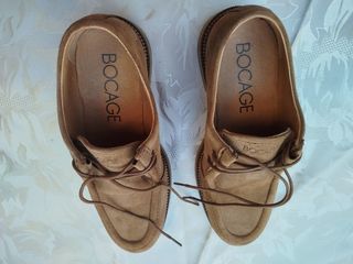 VENDS CHAUSSURES FEMMES A TALONS DE 7, 5 CM P.38 COULEUR MARRON CLAIR AVEC SUR LE DESSUS EN DECO UN TRESSAGE AJOURE ACHETEES 80 € VENDUES 25 € PORTEES 1 SEULE FOIS POUR UN MAR