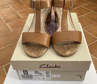 vends Chaussures d'été femme toutes ouvertes, à boucle Coloris : Cuir marron / Camel pointure 36 Talons env 6 cms Marque : clarks Très bon état