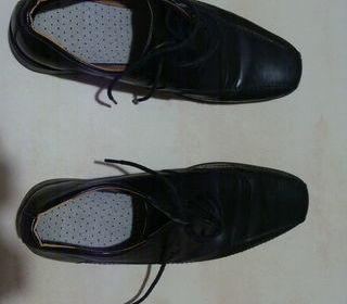 Mocassins hiver, cuir noir, bouts carrés et lacés. Pointure : 43. Talon 2,5 com Prix : 10 € Bon état