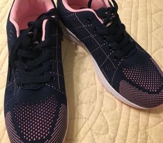 Sneakers neuves, pointure 39. Maillage bleu et rose sur le dessus. Trop petites.